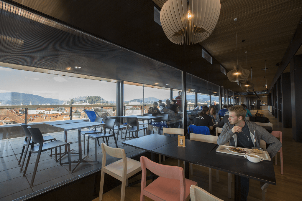 There is a café at the ground floor of the venue as well as a canteen on the 5th floor with great views.